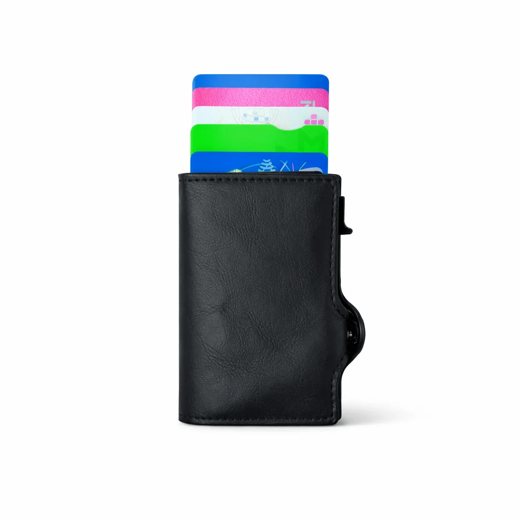 Com um sistema de slide rápido, tens até 7 cartões sempre prontos num único gesto.
